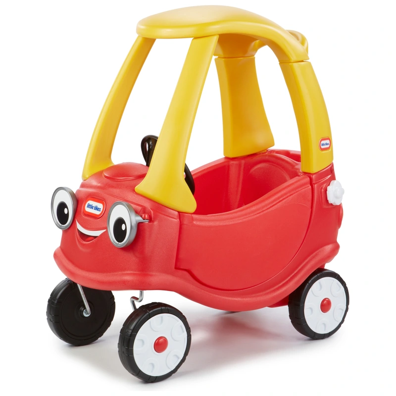 - Cozy Coupe: The famous red and yellow foot-powered car with the smiling face.