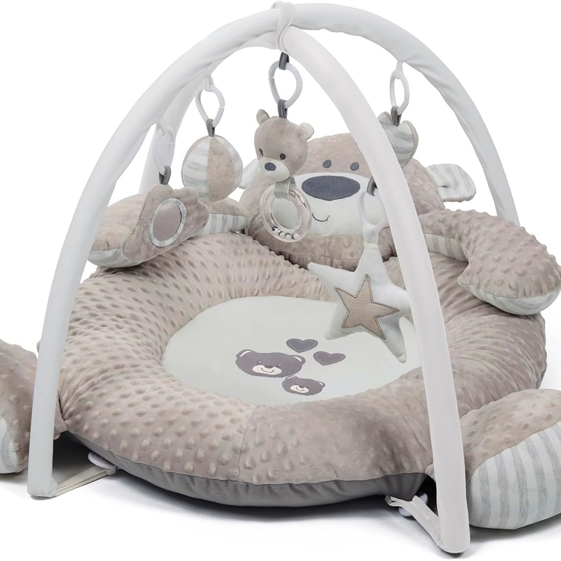 Play mats and gyms: Play mats provide a soft, safe space for tummy time and exploration. Many play mats come with attached toys or arches, offering visual stimulation and encouraging motor skill development.