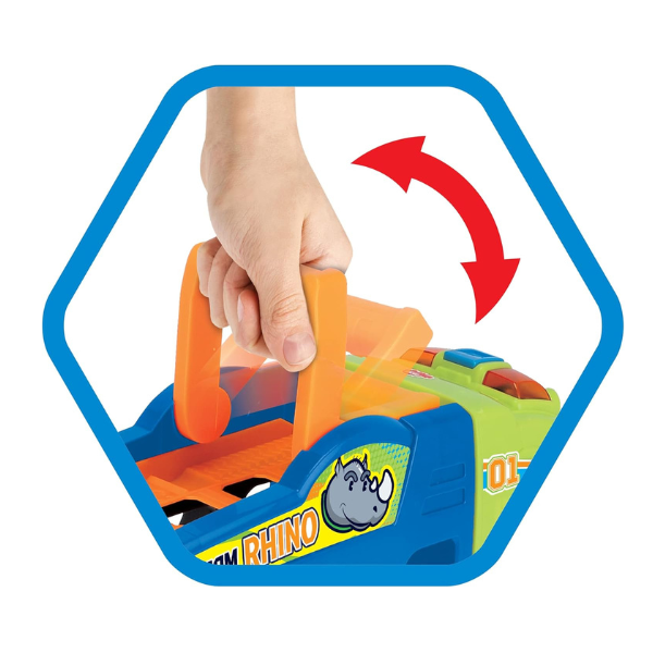 Introducing the ABC Tim Transporter. Vehicle for babies and toddlers from 2 years, with moving parts, lights and also sounds. Caution, heavy-duty vehicle! – This 42 cm transporter comes with a squeezable mini car that can also be loaded and transported by raising and lowering the loading surfaces. The light and sound effects are also powered by 2x AA batteries and can be switched on and off as desired. The built-in handle makes the transporter easy for young children to carry. Trains Motor skills – The vehicle comes with a number of features designed to train motor skills. Including moving parts and light and also cool sound effects. Safe design – Safety is our utmost priority. The transporter is colourfast and saliva-resistant. It also does not contain small parts that may present a choking hazard, and features rounded edges.
