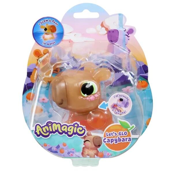 Let’s Glo Capybara is your glowing, squishy bestie for bath time and beyond! Drop her in water to reveal a magical glow, and give her belly a squeeze to uncover a hidden tangerine surprise. With a soft, stretchy body, she’s perfect for sensory play and floating fun. Pair her with Let’s Glo Capybara Spa Time for the full pampering experience! Available in Purple and Brown. Ideal for kids aged 4 and up who love cuddly, interactive water toys.