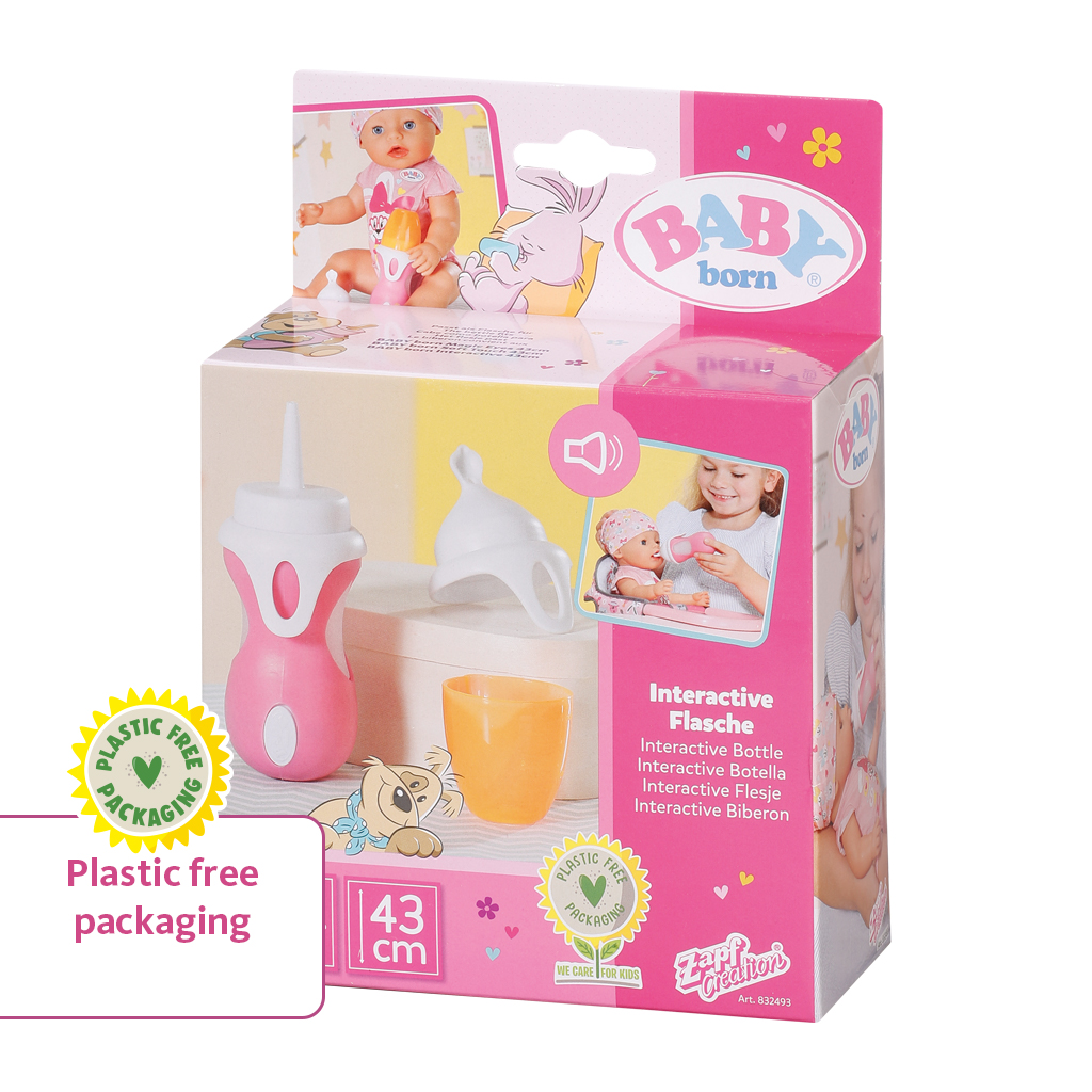 Works with all 43cm BABY born dolls, doll not included. Includes two interchangeable attachments – use as a bottle or also as a spoon! Ergonomically shaped bottle with removable cap