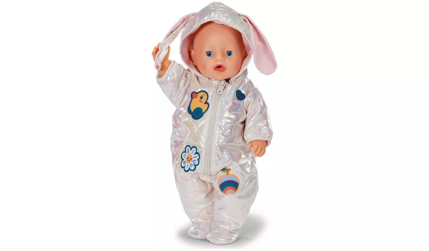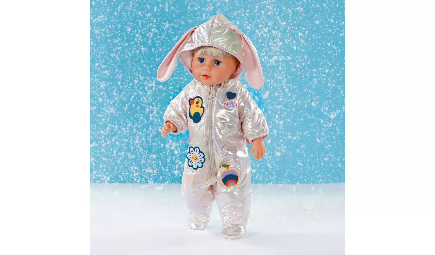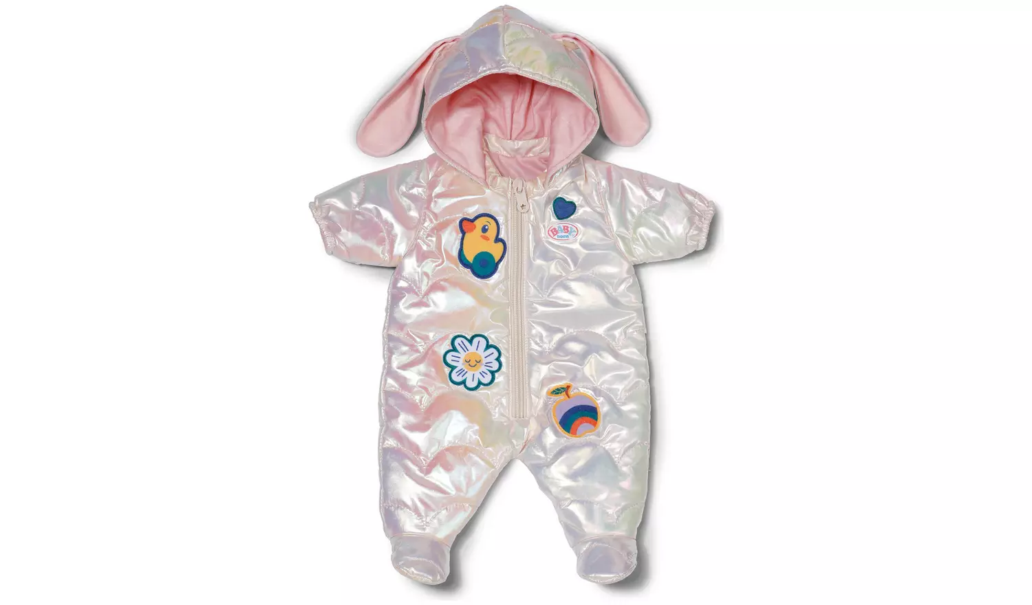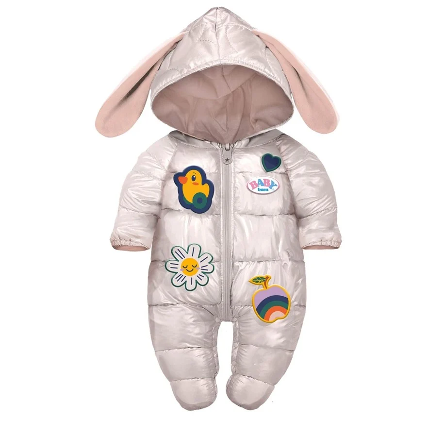 Introducing the Baby Born Winter Suit Outfit 43cm. The perfect outfit for those cold winter days, the Winter Suit Cream is sure to keep your BABY born warm whilst looking cool! A beautiful, cream zip-up all-in-one snowsuit with adorable bunny ears on the hood and cool sewn-on patches, BABY born can stay warm whilst playing outside! Suitable for 43cm dolls and BABY born Teddy. The Winter Suit also comes with easy-fit fastenings for little hands to gain independence in changing their dolls’ clothes. Suitable for children aged 3+. Doll not included.