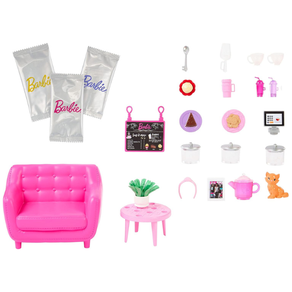 This Barbie playset encourages self-care moments at the relaxing Cute ‘n’ Cozy Café! It comes with a doll, furniture, and 22 storytelling pieces — including a color change feature!
