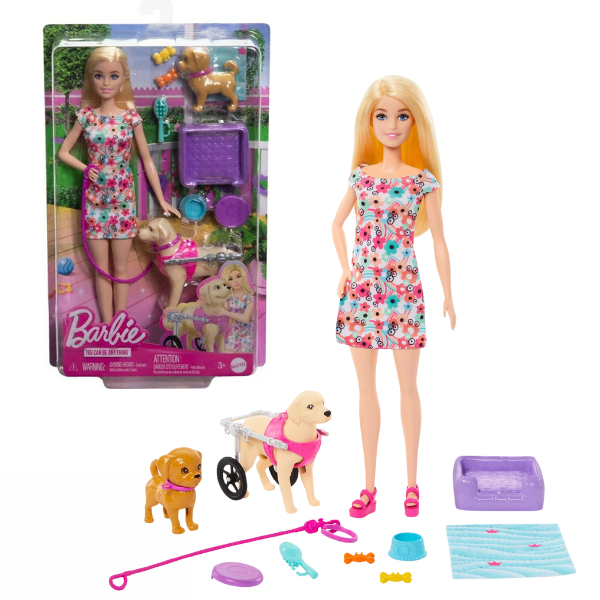 Barbie Doll With Puppy And Dog In A Wheelchair