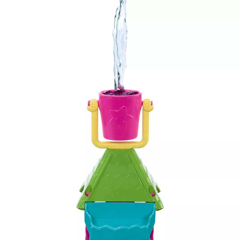 Barbie Skipper First Jobs dolls and playsets let kids explore the working world with the teenaged sister of Barbie. Inspired by the Skipper and the Big Babysitting Adventure movie, this playset builds Skipper doll’s resume with a job as waterpark attendant. Multiple areas of play and working features, including a real water slide, inspire imaginations to role-play job-related moments. More than five storytelling pieces help Skipper doll ensure the fun and safety of the toddler customer doll. Kids can fill the bucket at the top with water, then tip it to pour onto the water slide and into the pool for a realistic effect with a wow moment! Other park activities include a swing, rope ladder and bridge decorated with stars that really spin!