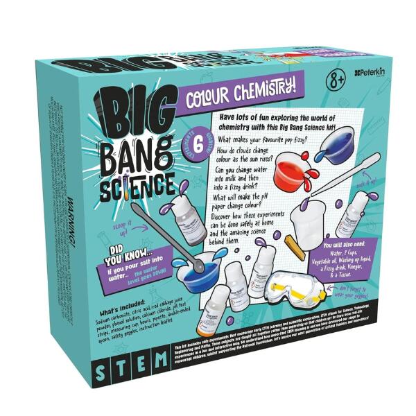 Introducing the Big Bang Science – Colour Chemistry Kit, Designed for children aged 8+, this kit lets kids safely explore science through 6 fun and fascinating experiments. Learn why drinks fizz, how clouds change colour at sunrise, and what makes pH paper change colour – all from home! The kit includes safe, easy-to-follow activities that inspire curiosity, encourage STEM learning, and spark imagination. A brilliant way to support school learning while having fun!