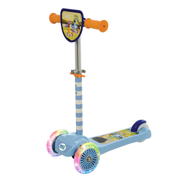 Bluey Mini Go Tilt Scooter with Lights is the perfect 3-wheeled scooter to help your little explorer develop key coordination and also balance.