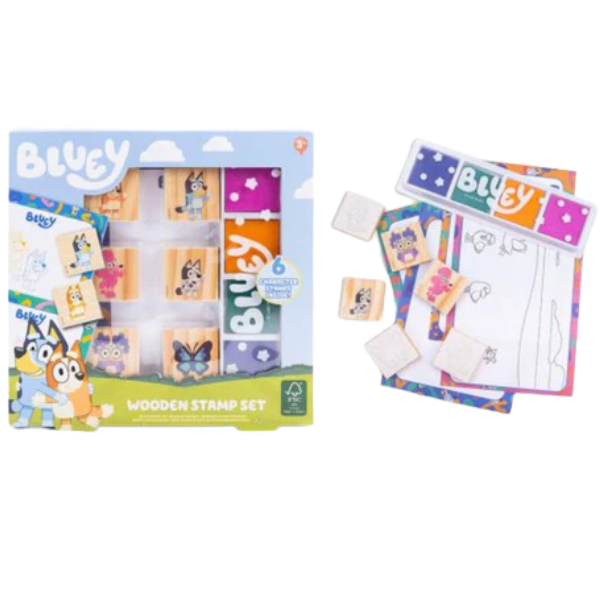 Keep the little ones entertained and unleash their imagination with our Bluey Wooden Stamp Set kids will love! The set includes 6 Bluey Themed Stamps and 4 Paint Colours. Suitable for Kids aged 3+