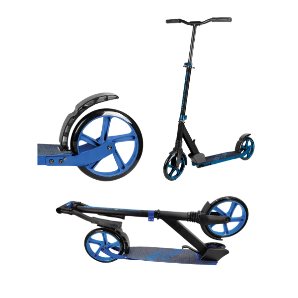 Introducing the BOLDCUBE Big 2 Wheel Scooter – Deep Blue. Making commuting speedy and smooth, the Big 2 Wheel Scooter is ready to handle any rough rider who’s looking to go the extra mile. Designed for balance confident riders and also thoughtfully fitted with front wheel suspension. The hard wearing 200mm wheel scooter is designed to take on the streets for the smoothest ride. Whilst being a practical alternative to cycling, the Big 2 Wheeler steers like a bike and is conveniently foldable and ultra compact, so getting about couldn’t be easier! This durable scooter is designed not just for kids, but also for Adults with the adjustable handlebar and wide long deck. Everyone can join in on the scooting fun.