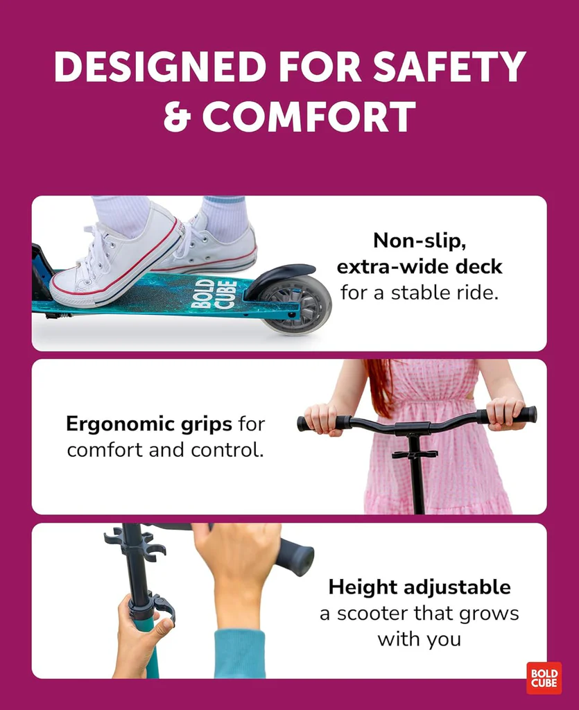 Riders of all ages have been inspired to fall in love with this new style of travel which continues to bring a sense of positive change to their lives. Empowered by creativity and also the spirit of adventure, BOLDCUBE scooters set them apart, bringing quality, variety and a kick at radically fair prices. As word spread, they began receiving requests from across the globe for their eye catching designs. Designing rides that can endure adventures, but can also be repaired whenever you hit a bump in the road. We are delighted to introduce this exciting new range of scooters.