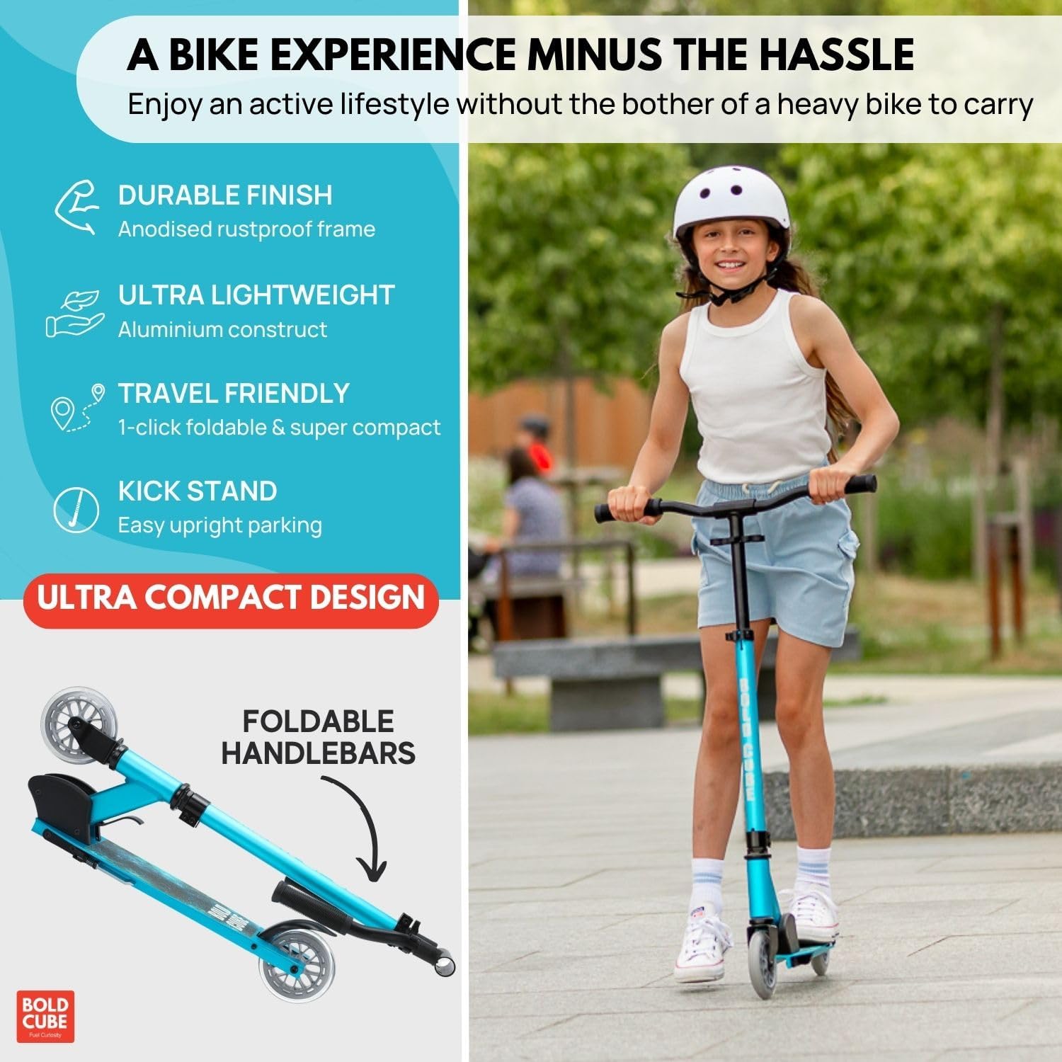 BOLDCUBE Turquoise Deluxe 2 Wheel Scooter