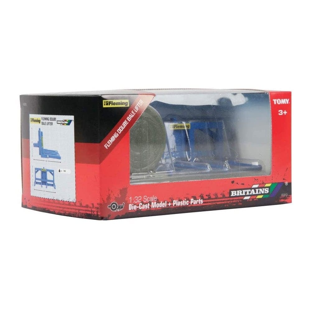Britains 1:32 Double Bale Lifter. The lifter is compatible with all Britains rear hitches – hitch up and transport the two included bales around the farm. Once in the field press the button to drop the forks and release the bales. Hitch is compatible with other 1:32 scale authentic replica farm vehicles.