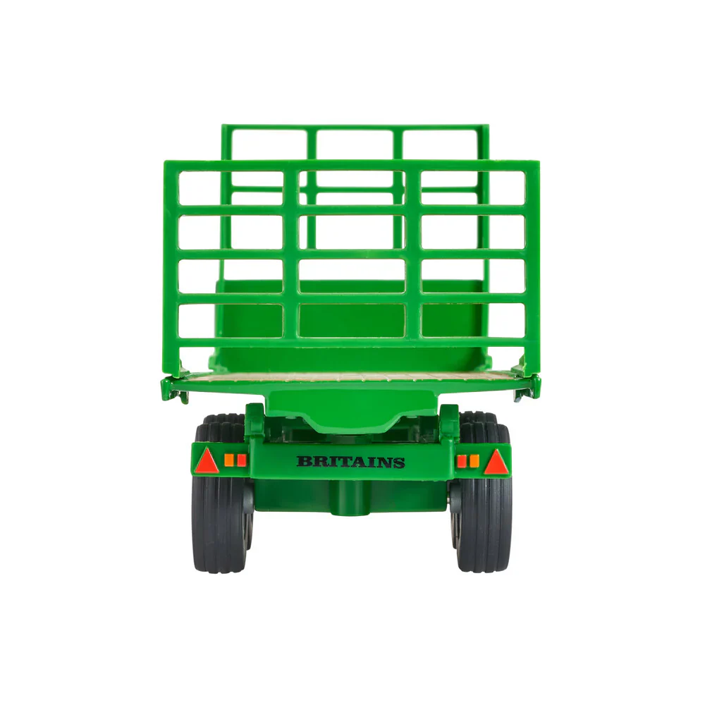 Introducing the Britains 1:32 Flat Bed Trailer. Britains has brought back the twin axle green flatbed trailer to the range. It comes with interchangeable racks you can adjust the position for your needs. The trailer will hitch to most Britains 1:32 vehicles in your collection. Compatible with all Britains Farmyard 1:32 tractors and accessories. Made of die cast metal and durable precision-moulded plastic. Suitable for children aged three years and over.