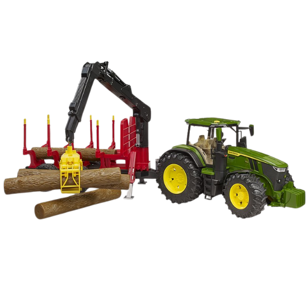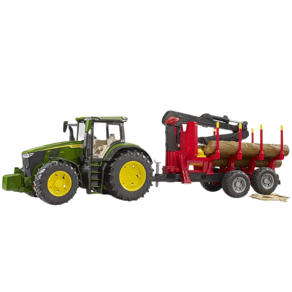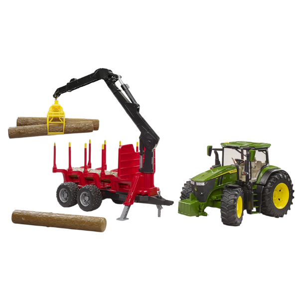 Bruder 1:16 John Deere 7R W/Forestry Trailer & 4 Trunks. Modern agriculture is no longer conceivable without modern tractors. As farmers’ work is not only complex. But also full of challenges, they need the right technology. John Deere 7R series tractors combine a low total weight with high performance. This agile tractor not only speeds up transports, but also drives any operation forward.