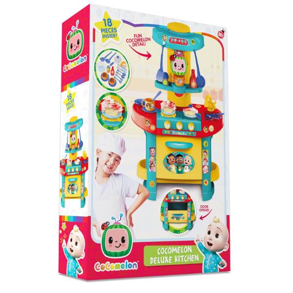 The officially Licensed Cocomelon toys Deluxe kitchen playset is perfect for your child’s first kitchen! This playset includes a variety of accessories.
