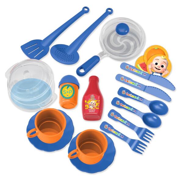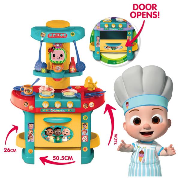 Full kitchen role play set containing hob, oven, sink, storage and all the fun utensils needed to enjoy role-playing as chef, cook or your favourite CoComelon characters
