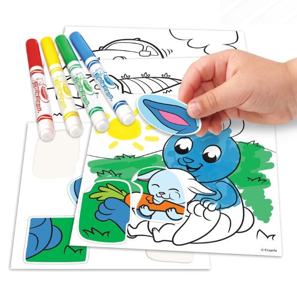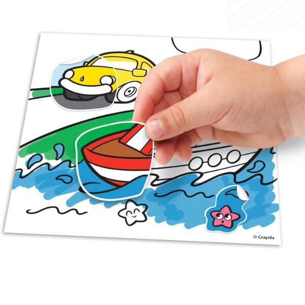 24 simple self-adhesive puzzles of 3 pieces to make and redo thanks to the repositionable stickers. 8 ultra-washable felt-tip pens to decorate the drawing boards. Ultra-washable ink with water on the skin, soap-free, without rubbing. This very comprehensive sticker kit allows little ones to become familiar with shapes, objects and colors. Includes repositionable 3-piece self-adhesive puzzles to make and redo with the repositionable stickers! Contains: 24 sheets of stickers, 24 colouring pages, 8 Mini Kids washable