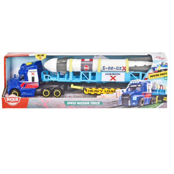 Introducing the Dickie Truck with Rocket Launch. This big truck comes with a 30cm space rocket waiting to be transported to the nearest launch pad. – Moving Parts – In addition to rotating wheels, the truck also features a variety of other moving parts, such as heavy-duty props and a folding launch pad. – With Light and Sound Effects – The 41cm long truck has a range of realistic light and sound effects (2x AAA batteries are included in the set). – Ages 3 and up – Designed for children aged 3 and up, this truck is guaranteed to provide hours of fun.