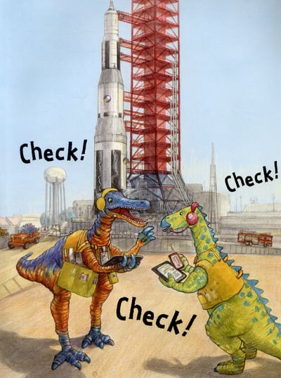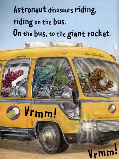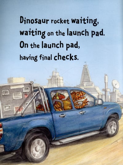 Introducing the Dinosaur Rocket Book. More dinosaur-and-vehicle fun from bestselling Penny Dale – over 1 million Dinosaur books sold!No longer content with building, or zooming, or even rescuing, the dinosaurs now have their sights set on something much, much bigger… the MOON! Join our fearsome friends as they prepare for their cosmic journey: is the rocket all ready? Will the launch go smoothly? Can they make it to the moon?Another fast and furious adventure for anyone who loves dinosaurs AND vehicles! Suitable for kids aged 3 – 5 years.