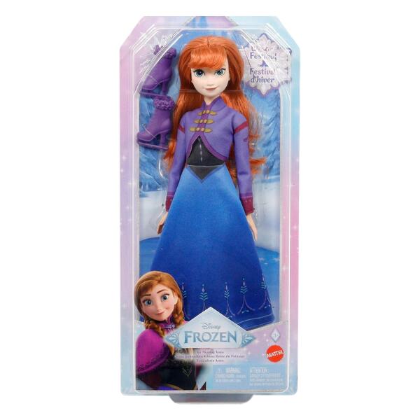 Inspired by Frozen Winter Festival Winter fun can start with this Anna doll. It motivates Arendelle residents to celebrate the season with family and friends and have lots of fun on the ice! With her magical winter party dress, a jacket and two pairs of shoes, she’s ready for an adventure. Whether she’s performing daring tricks in skates on the ice or walking around the event grounds with her gorgeous boots, the Anna doll is sure to have a good time. The doll cannot stand on its own. Variations in colour and design reserved.