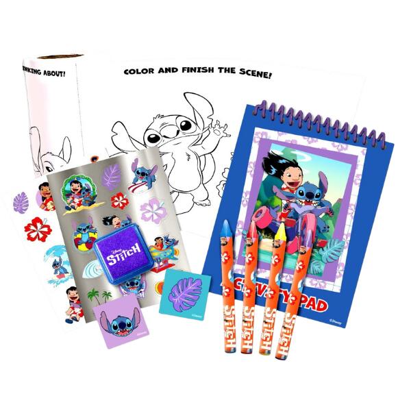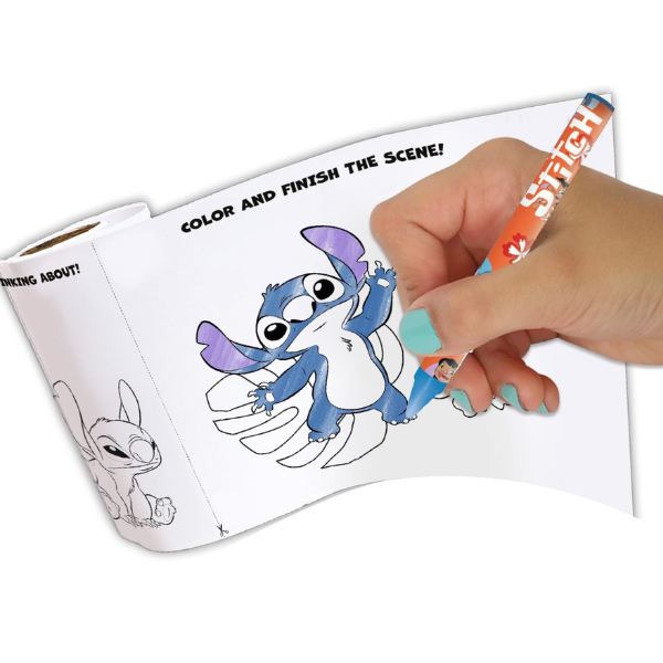 Get ready for out-of-this-world fun with the Disney Stitch My Own Creativity set. This kids’ arts and crafts kit is shaped like Disney Stitch’s head. Inside, find a 20-page activity pad, a 10-foot activity roll, 2 sticker sheets, 4 crayons, 2 stampers, and an ink pad. The activity pad and roll are full of designs to color, games, and places to add stickers. Play Tic-Tac-Toe with stampers, doodle, craft, and also more.