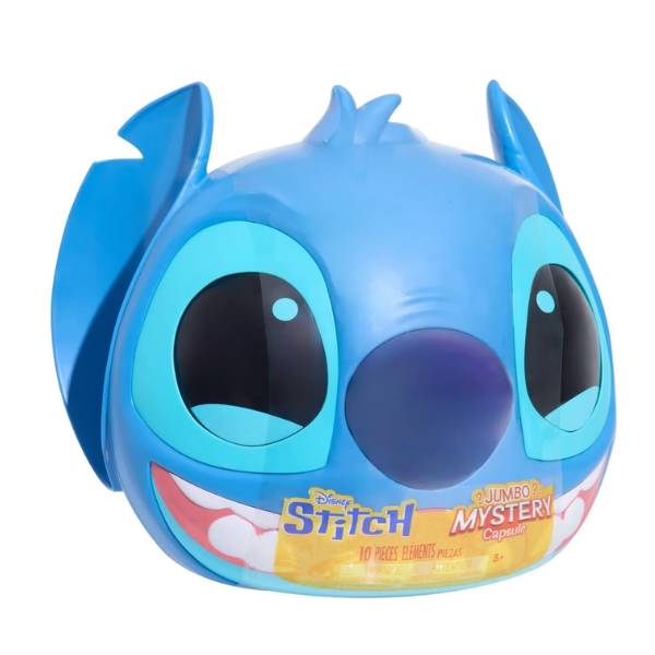Discover out-of-this-world surprises inside the Disney Stitch Jumbo Mystery Capsule. This big, 23cm Stitch-head capsule is filled with ten toys and activities inspired by Stitch’s favourite snacks. Find a 15cm Tsum Tsum plush toy, a pair of 5cm kids’ toy figures, a backpack clip, stickers, a poster, a puzzle and more. Stitch fans of all ages will love opening each of these items to share, play with and display. Add multiple capsules to use as fun prizes at kids’ parties, favours and special occasion gifts for girls and boys. The Stitch Jumbo Mystery Capsule makes a great rainy day activity, birthday gift or anytime surprise present for kids.