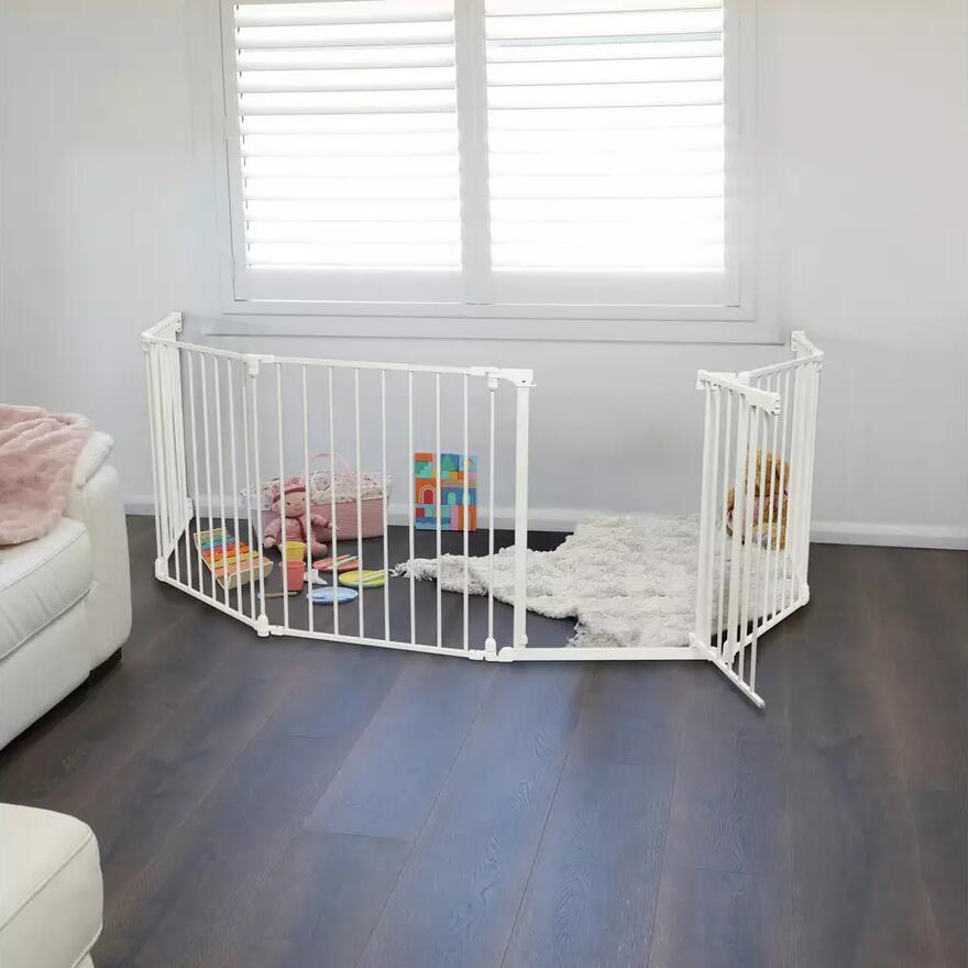 • It functions as a freestanding playpen, a mounted fireplace barrier, or Room Divider/Hallway Safety Gate.