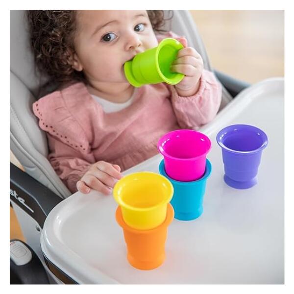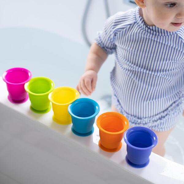 These cups are great for hours of fun. Take them in the bath for scooping, watering and swimming. Stick them to windows, walls, tables and floors. Does not stain