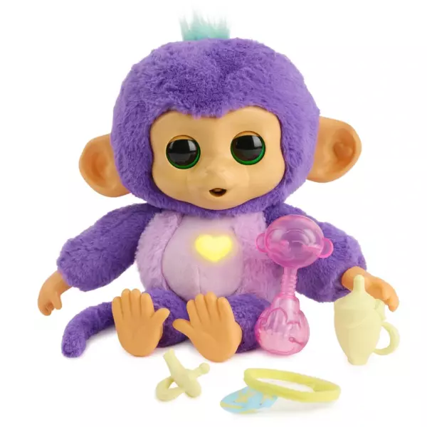 • Interactive Baby Monkey with soft purple fur and light up heart