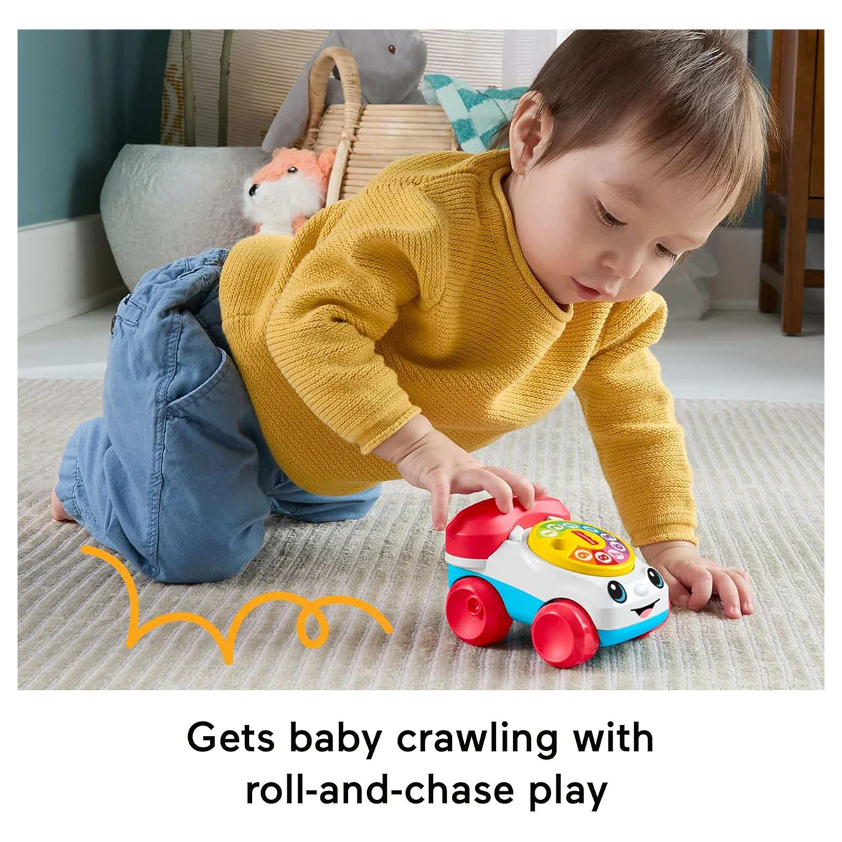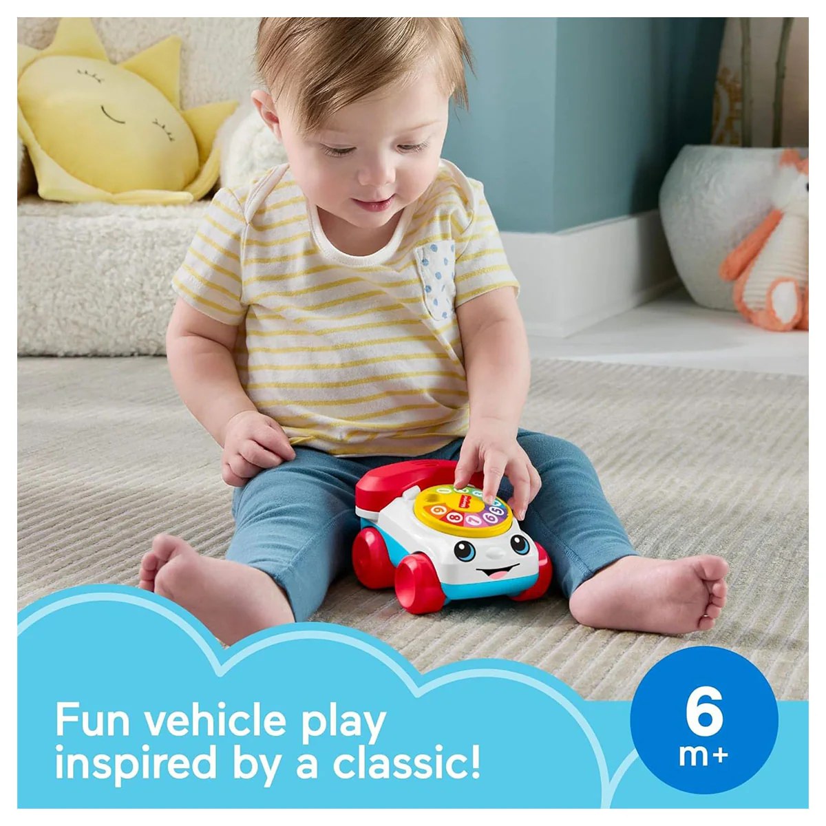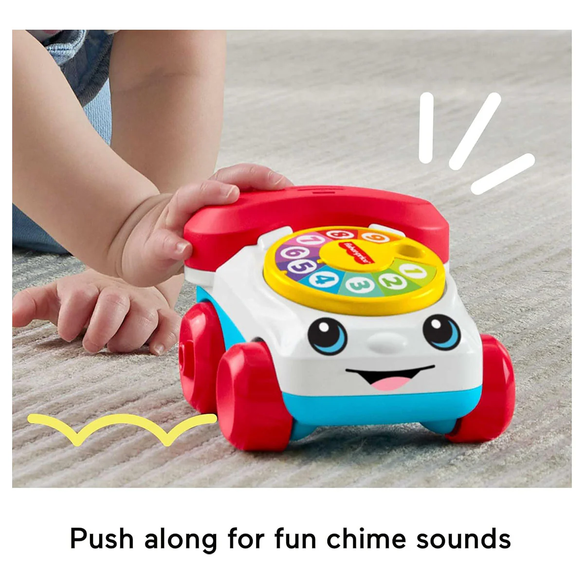 Enjoy classic fun with the Fisher-Price Classic Chatter Phone in a new sliding vehicle design! This engaging toy encourages babies to crawl, explore, and develop motor skills while having a blast. Press the phone and hear fun ringing sounds, or turn the dial to enjoy classic click sounds. Designed to promote gross and fine motor skills, sensory development, and early understanding of cause and effect, this mini lapperphone offers endless interactive fun for little ones.