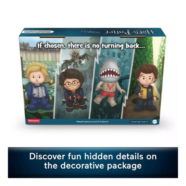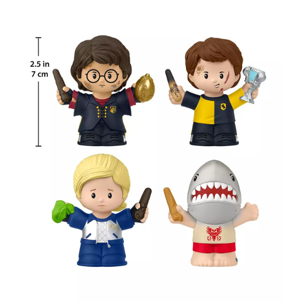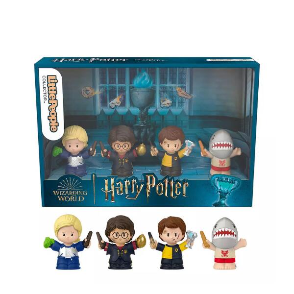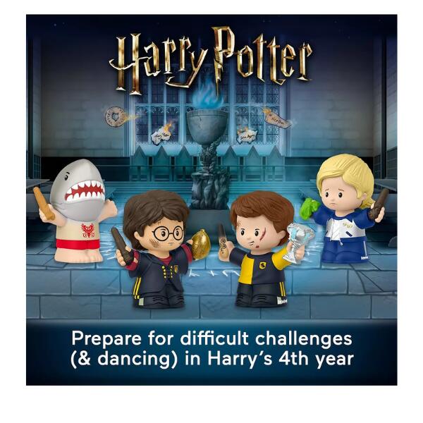 Fans can relive the epic action of the Triwizard Tournament with this special edition Little People Collector Harry Potter and the Goblet of Fire set from Fisher-Price. From dragons to dancing, Harry’s fourth year at Hogwarts School of Witchcraft and Wizardry is packed with memorable moments. This highly detailed set includes all four Triwizard champions reimagined in signature Little People style to depict an iconic scene from the film, including Fleur Delacour with her Welsh Green dragon model, Viktor Krum mid-transfiguration into a shark,. Harry Potter holding the golden egg clue, and Cedric Diggory with the Triwizard Cup. This collectable figure set arrives in a decorative window box package featuring lots of fun hidden details for fans to discover.