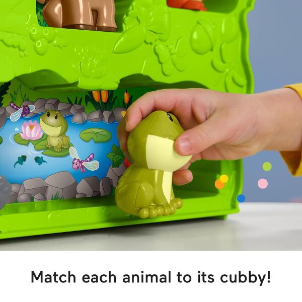 Boys and girls can place each animal in its corresponding cubicle on the tree