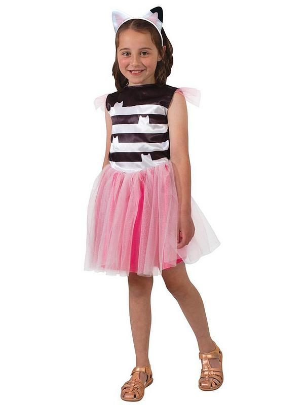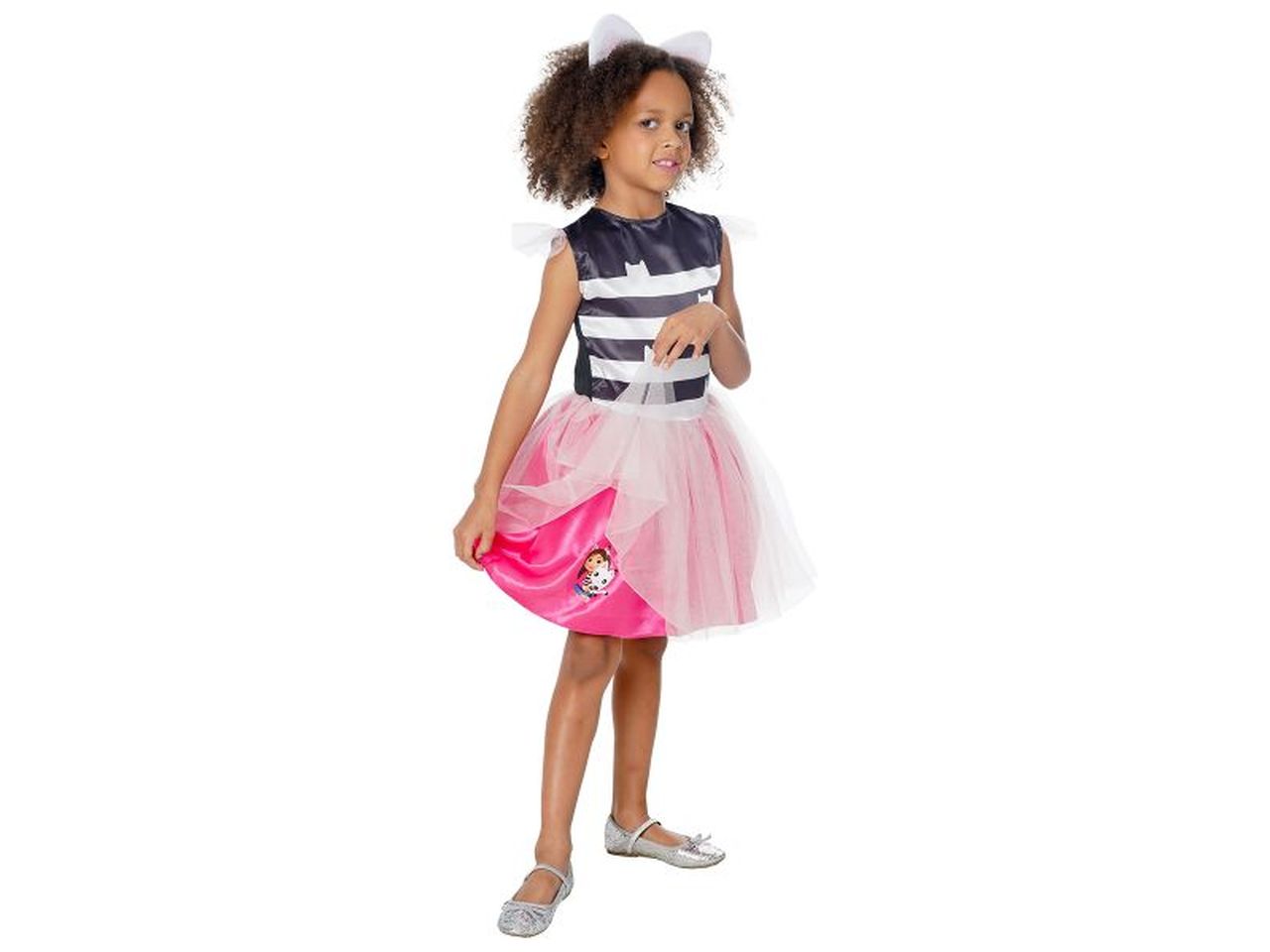 Introducing the Gabby’s Dollhouse Gabby Costume 3-5 Years. Let their imagination run wild and enter Gabby’s dollhouse with fantastic mini worlds and meet kitty characters. This Gabby tutu dress has a black & white stripe, tutu skirt and matching headband. It will make your little one feel immersed in the world of Gabby. It is perfect for any fancy dress occasion, including parties, school events, Halloween and of course – play time!