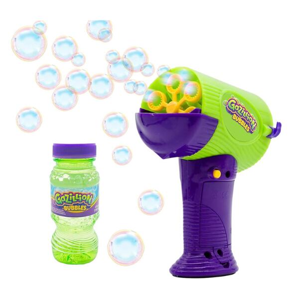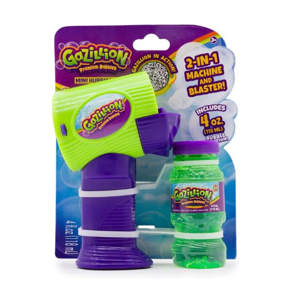 Introducing The Mini Hurricane, The Coolest 2 In 1 Bubble Machine And Hand Held Blaster This Season! The Mini Hurricane Creates The Awesome Bubble Blowing Power Of The Hurricane In The Palm Of Your Hand! Simply Pour The Solution Into The Reservoir And Press The Button To Create A Storm Of Colorful Bubbles! Includes A 4 Oz. Bottle Of Gazillion Premium Bubbles Solution.