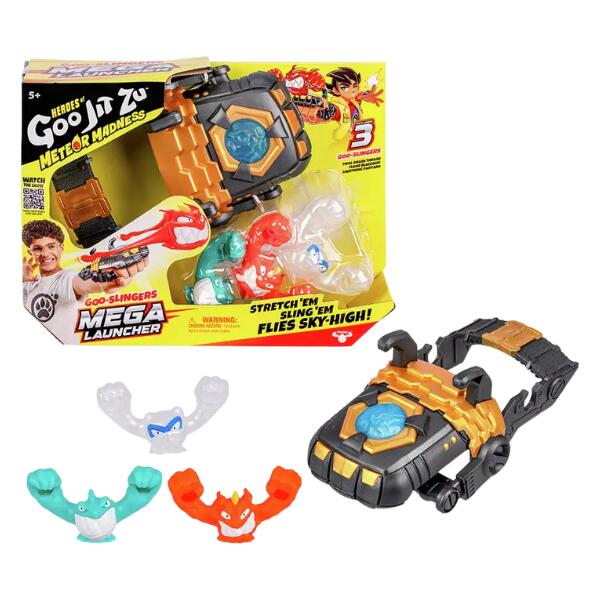 The stretch that cant be contained! Get ready to stretch to the extreme with an all-new way to play – introducing Heroes of Goo Jit Zu: Meteor Madness Goo-Slingers Mega Launcher. Kenji, the Goo Keepers nephew, has unlocked the secrets of his uncles old designs. Unveiling the most powerful Goo-Slingers and also the mighty Mega Launcher. Adding his own twist to the legendary power of the Goo. Kids can relive the moment Kenji cracks the code and brings the Goo-Slingers and Mega Launcher to life, unleashing their full power in action-packed battles, all in brand-new Heroes of Goo Jit Zu episodes on YouTube.
