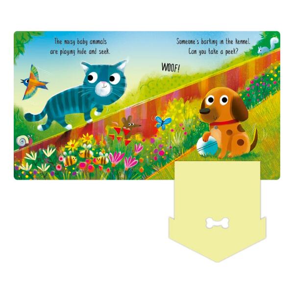 - The noisy baby animals are playing hide and seek! Will their chirps, barks and squeaks give them away? Children will love searching for their favourite pets behind the illustrated felt flaps in this fun and engaging book.
