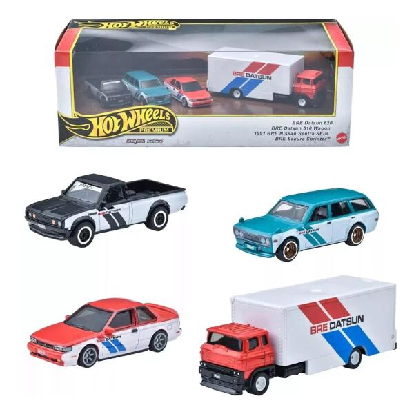 • Contents: 1x BRE Datsun 620, 1x BRE Datsun 510 wagon, 1x 1991 BRE Nissan Sentra SE-R and 1x BRE Sakura Sprinter