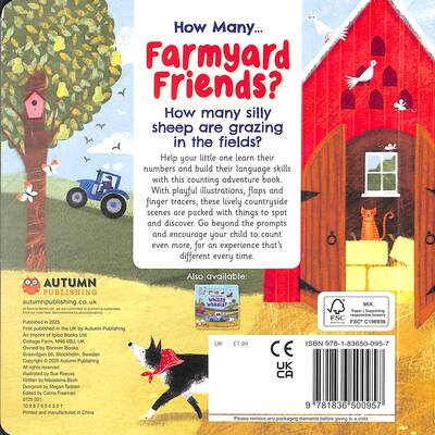 Introducing the How Many Farmyard Friends Book. How many silly sheep are grazing in the fields?. Help your little one learn their numbers and build their language skills with this counting adventure book. With playful illustrations, flaps and finger tracers, these lively countryside scenes are packed with things to spot and discover. Go beyond the prompts and encourage your child to count even more, for an experience that’s different every time. Suitable for kids aged 2+ years.