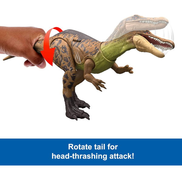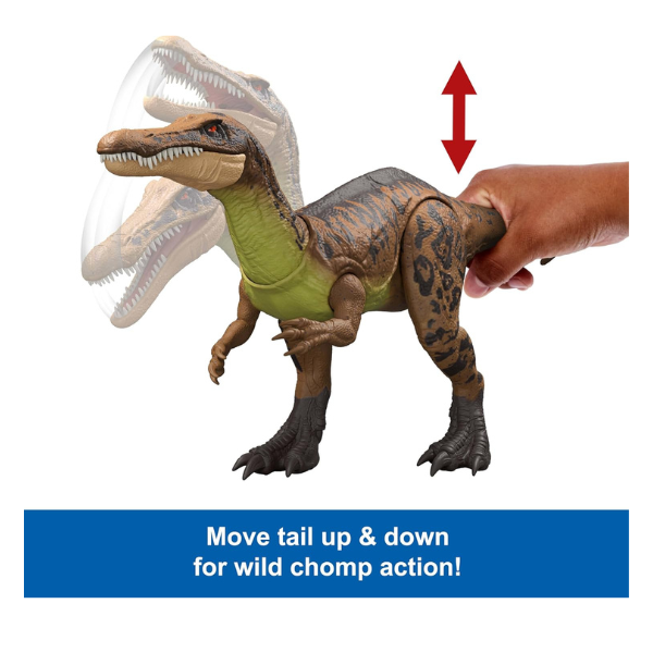 • Rampage attack! The intimidating look of the Suchomimus dinosaur figure from Jurassic World: Chaos Theory is brought to life with this Gigantic Tracker figure with vicious thrashing attack.