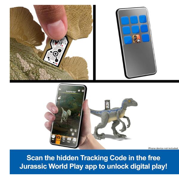 The Suchomimus dinosaur from Jurassic World: Chaos Theory is represented by this Gigantic Tracker figure with two attack motions. Move the tail up and down for a cool chomping motion, then rotate it for a second thrash attack! This 13.7-inch long figure features authentic sculpting and deco for realistic battle play or fierce posing. Scan the hidden Tracking Code in the free Jurassic World Play App with a compatible smart device (Android or iOS, not included) to unlock a digital version of the dinosaur and access to fiercely fun games! Makes a great gift for dinosaur fans ages 4 years and up. Colors and decorations may vary.