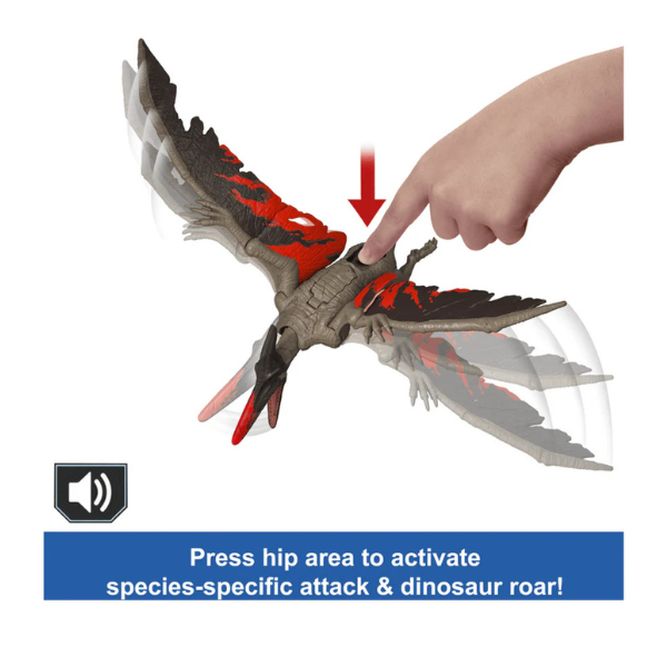 Get roaring and ferocious with Jurassic World Epic Evolution Pteranodon. These Wild Roar figures have an exciting spin wheel- activated continuous ATTACK action — from tail strikes to side strikes to slashing action, depending on the species, accompanied by a fierce ROAR!