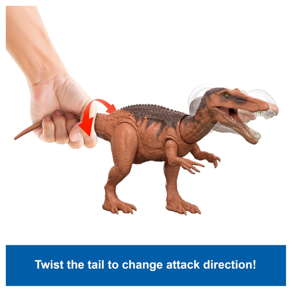 Total Attack! Kids will easily master both motions moving the tail up and down to activate the species-specific attack, with a savage roar, then twist the tail to change the direction for battle play!