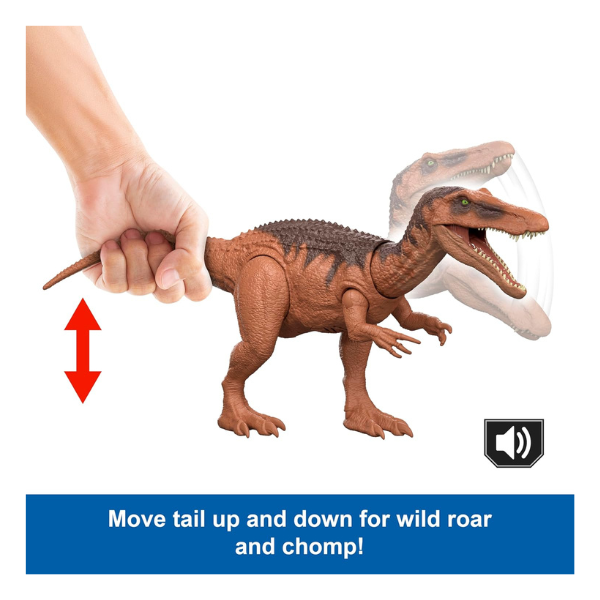 Get roaring and ferocious with this Wild Roar Baryonyx Dinosaur. Kids can easily move the tail up and down on this dinosaur toy to activate a thrilling attack motion, accompanied by a savage roar, then twist the tail to change the direction for thrilling battle play! This movie-inspired figure has movable joints, ready for exciting play or display.