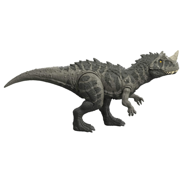 This Jurassic World Wild Roar Ceratosaurus dinosaur toy has an attack action, sounds and dramatic lights! Press the button to activate a vicious side-to-side chomp attack, accompanied by a ferocious roar, with light-up effects to add to the excitement. This 12.4-inch long dinosaur inspired by the Jurassic World franchise has movable joints, ready for exciting dinosaur play and display.