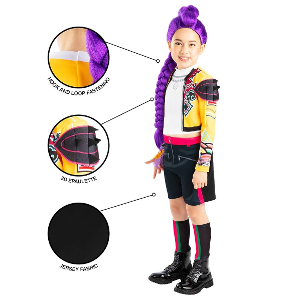 If your little one dreams of lights, music, and rhythm, this K-Pop Demon Hunters Rumi Costume – Age 9-10 (approx. 134–140 cm) will give them the star look they imagine. Inspired by the urban-pop style of K-Pop idols, this outfit combines fashion, comfort, and freedom of movement—ideal for parties, carnivals, or creative playtime. This costume is not just clothes. It’s an invitation to imagine, dance, sing, or simply have a great time portraying your favourite idol.