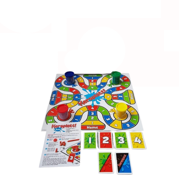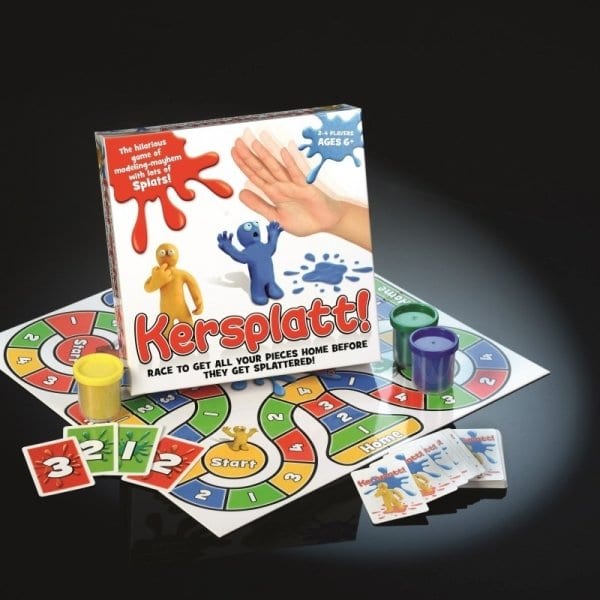Kersplatt Game. Kersplatt! is the hilarious, fast-paced, family board game of modelling mayhem! A high energy, tactile but strategic board game that will see players Kersplatting opponents’ creative masterpieces. First players have to get creative and make their own play pieces with the modelling dough provided. Then it is all to play for! Taking it in turns to turn over a card. Players try to advance their play pieces as far as they can around the board whilst trying to stop their opponents from reaching their Home square first.