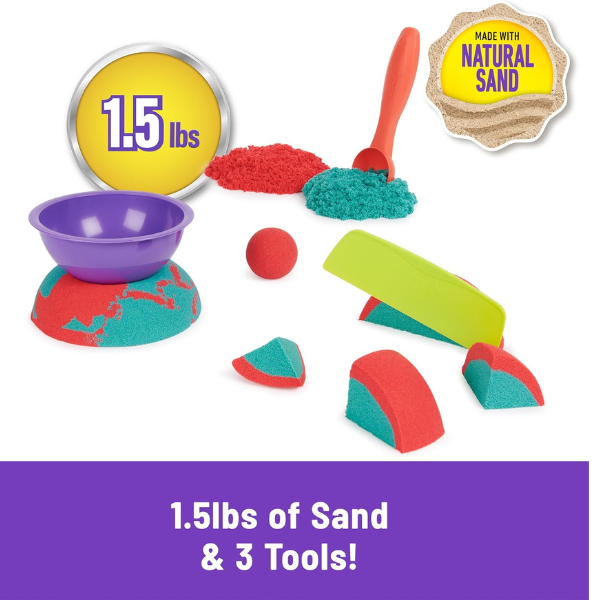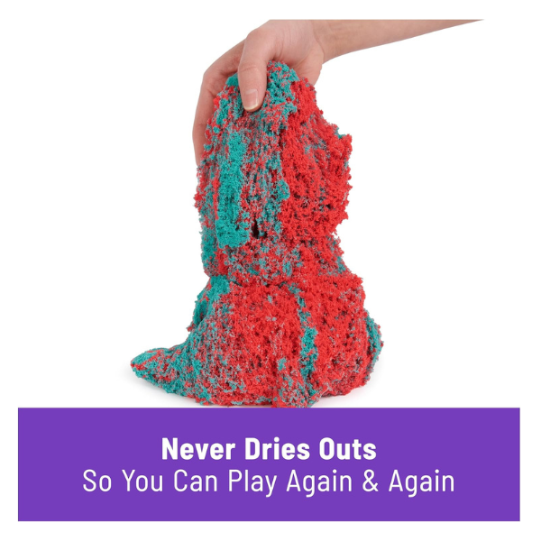 Prepare to be mesmerized! The Kinetic Sand Mould N’ Flow Set brings the ultimate tactile experience right to your tabletop. With 1.5 lbs (24 oz) of the original, magical Kinetic Sand in vibrant red and teal, you can create stunning “flow” effects that mimic the satisfying videos you see online. Use the included tools to mould your shapes, then watch in awe as they slowly collapse and “flow” through your fingers. It’s the toy that never dries out and never stops being fun!