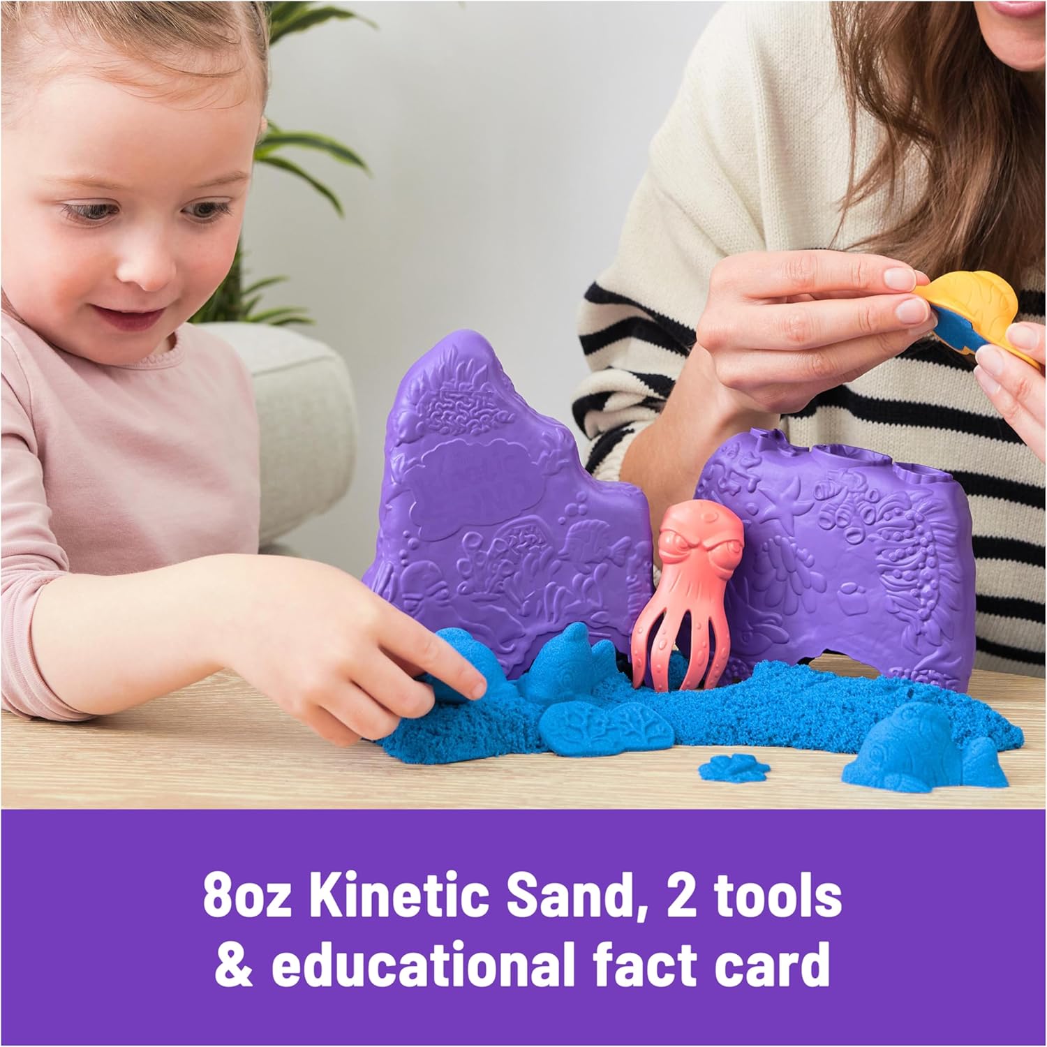 Includes: 8oz Kinetic Sand, 1 Coral Container, 1 Octopus Tool, 1 Fish Mold, 1 Eco Info Card