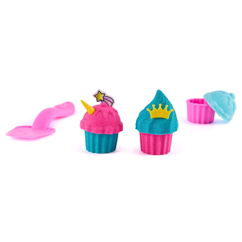 Enjoy a magical treat with the Kinetic Sand Unicorn Bake Shoppe Set! This playset comes with 453g of Kinetic Sand: 226g of shimmer teal and 226g of pink neon sand. Mix together to discover new colours or layer for mesmerising creations. Create unicorn cupcakes with the moulds and tools. This set includes 3 cupcake moulds, roller, spatula and 6 unicorn-themed accessories.
