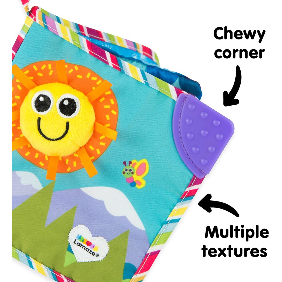 Baby will love the sounds that the different pages make encourage sensory exploration. What does this page do? Crinkle and squeak, and lots of fun with the multi-coloured rattle too. Ideal for baby to play with at home, or on the go, simply attach the book to your stroller or changing bag with the easy clip. Ideal for babies from birth. Lamaze brings moments to treasure for babies and parents, encouraging together time and independent daily discoveries. Suitable from birth.